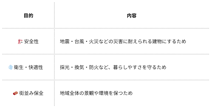 「建物を建てるときに守らなければならない最低限の安全基準」