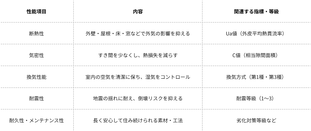 高性能住宅とは、断熱性・気密性・耐震性・換気性など、住まいの基本性能を高めた家のことです。