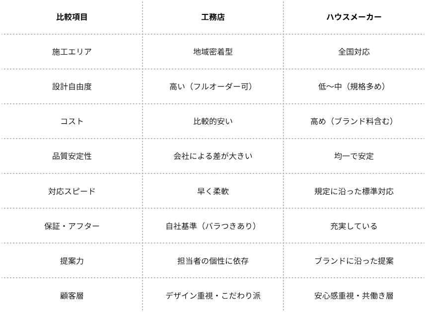 🎨 デザインや間取りにこだわりたい家庭 → 工務店向き