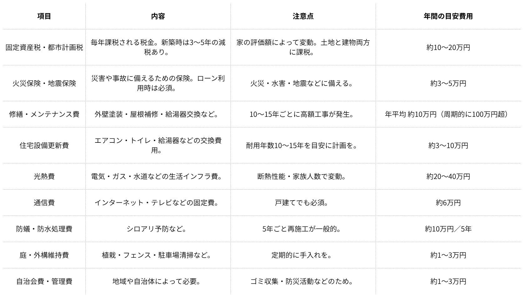家を建てた後にかかる維持費を理解しておくことは、安心して暮らすための第一歩です。