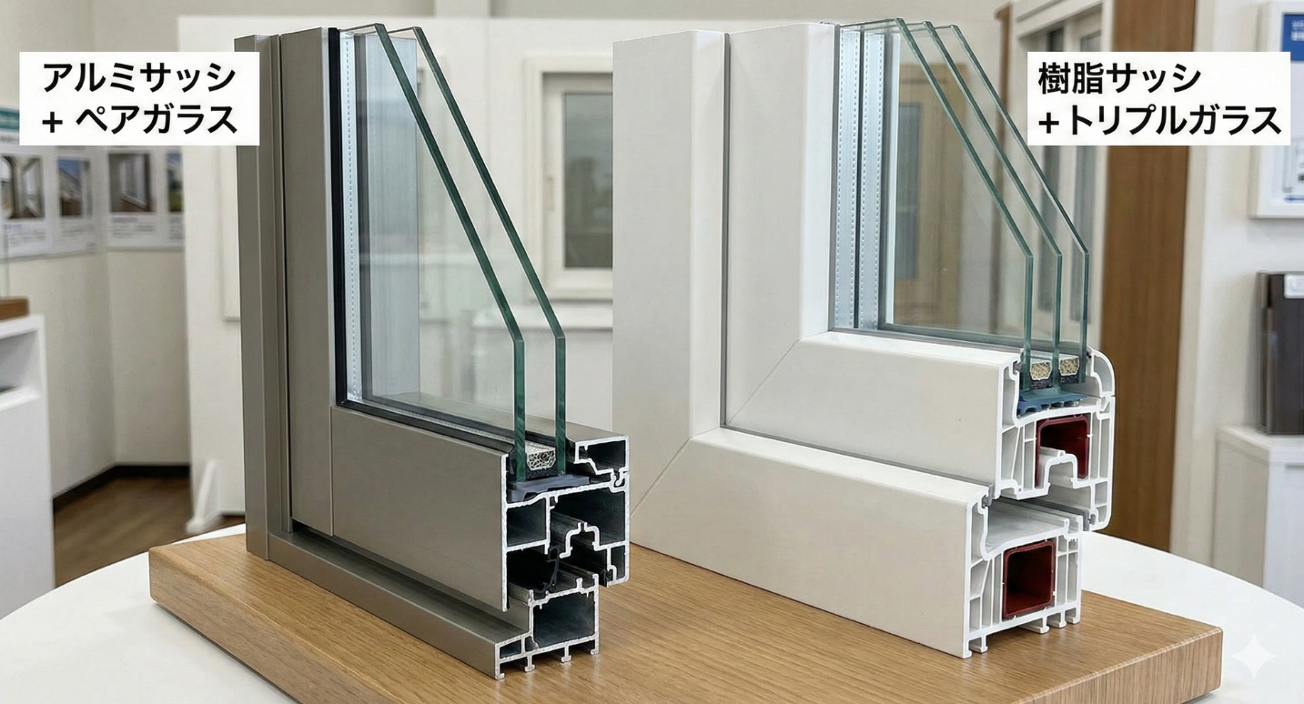 - サッシ: アルミではなく、熱を伝えにくい「樹脂サッシ」を選ぶ。